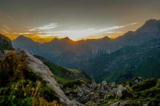 Coucher de soleil sur la crête - Le soleil se couche derrière les sommets et plonge le panorama alpin dans les couleurs chaudes du soir.