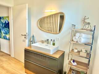L'Alpenglanz Deluxe Studio à Schaan offre un confort d'habitation moderne pour une à deux personnes sur 43 m². Le studio avec entrée séparée convainc par son design élégant, ses détails soignés et sa situation calme au pied des montagnes des Trois Sœurs.