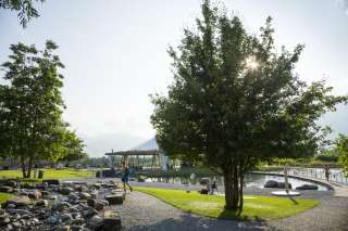 Mais le parc de loisirs de Grossabünt n'offre pas seulement le plaisir de la baignade, du sport et du jeu, mais aussi la possibilité de découvrir la nature. Le chemin en bois mène à travers des bosquets indigènes et transmet des connaissances sur les espaces vitaux du Grossabünt. Le chemin de pierre, quant à lui, raconte une partie de l'histoire et propose des faits passionnants sur le lac de baignade naturel. Quant au bistrot, il propose des rafraîchissements, des snacks et des repas pour les visiteurs affamés.