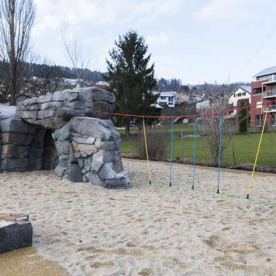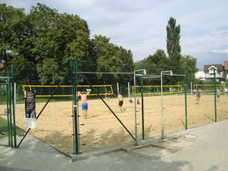 De belles promenades éclairées traversent tout le parc de loisirs et de détente. Le terrain de beach-volley avec tribune compte trois places. Des places de parking sont disponibles.