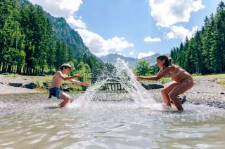 Le lac Gänglesee est traversé par le Valünerbach. Le lac de barrage Steg, pour lequel le lac Gänglesee sert de collecteur de boue, lui est directement rattaché. Des places de grillades invitent à la détente le soir ou au déjeuner en commun. Les enfants peuvent barboter dans l'eau plutôt fraîche les chaudes journées d'été.