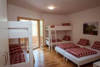 Le nouveau bâtiment est équipé d'une salle de bain et de toilettes dans le couloir, d'une cuisine et d'une salle de séjour ainsi que d'une chambre double, d'une chambre à 4 lits et d'une chambre à 6 lits. Les chambres sont peu coûteuses et permettent aux voyageurs à petit budget de s'offrir le confort d'un hébergement douillet. Les draps sont compris dans le prix de la chambre.