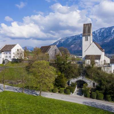 La colline est probablement habitée depuis 4000 ans et une église devait déjà s'y trouver au 6e siècle. La nouvelle église paroissiale de style gothique a été inaugurée en 1481. Le presbytère date de 1539.