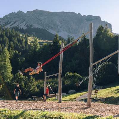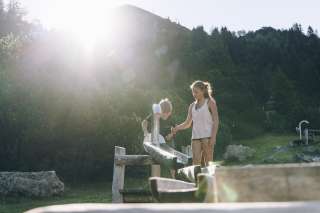 Le parc de jeux de Malbun est pour les enfants une préparation idéale aux premières tentatives de randonnée en terrain alpin. Sur l'installation d'escalade et d'équilibre, ils peuvent s'entraîner à donner leurs premiers coups de pied sûrs et à coordonner leurs mouvements. Le sol mou en copeaux de bois pardonne aussi les petits dérapages. Des stations comme le parcours d'eau et de boue invitent à jouer librement avec des cours d'eau, des bassins de retenue, etc. à l'ombre des arbres.