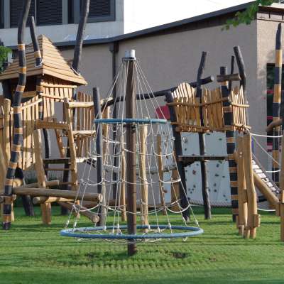 L'aire de jeux près de l'école communale de Ruggell est idéale pour les enfants un peu plus grands et se trouve dans la cour de l'école à côté de la salle de gymnastique. Les enfants peuvent s'y défouler sur des balançoires, des structures d'escalade et un toboggan. Juste à côté, le terrain rouge invite à jouer au football et au basket-ball.