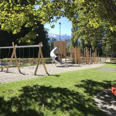 Outre un château de jeu et d'escalade, un trampoline, une slackline et une balançoire permettent de bouger et de s'amuser. Un bac à sable et des balançoires à ressort invitent les plus jeunes à jouer, tandis qu'un groupe de tables est à disposition pour les pauses détente. L'aire de jeux se trouve juste à côté de l'école primaire et du jardin d'enfants Iramali et est un lieu de rencontre apprécié des familles.